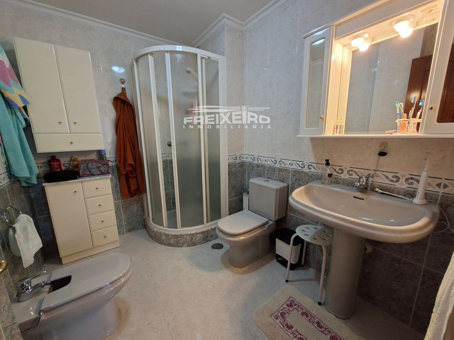 La vivienda cuenta con 3 dormitorios y 2 baños completos, uno de ellos en suite en el dormitorio principal con plato de ducha, y un segundo baño con bañera. Dispone de un amplio y luminoso salón con salida a balcón, y cocina independiente con acceso a tendedero, donde se ubican la caldera y la lavadora, además de un práctico armario empotrado para almacenaje.