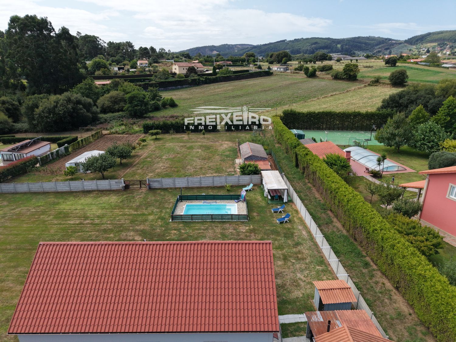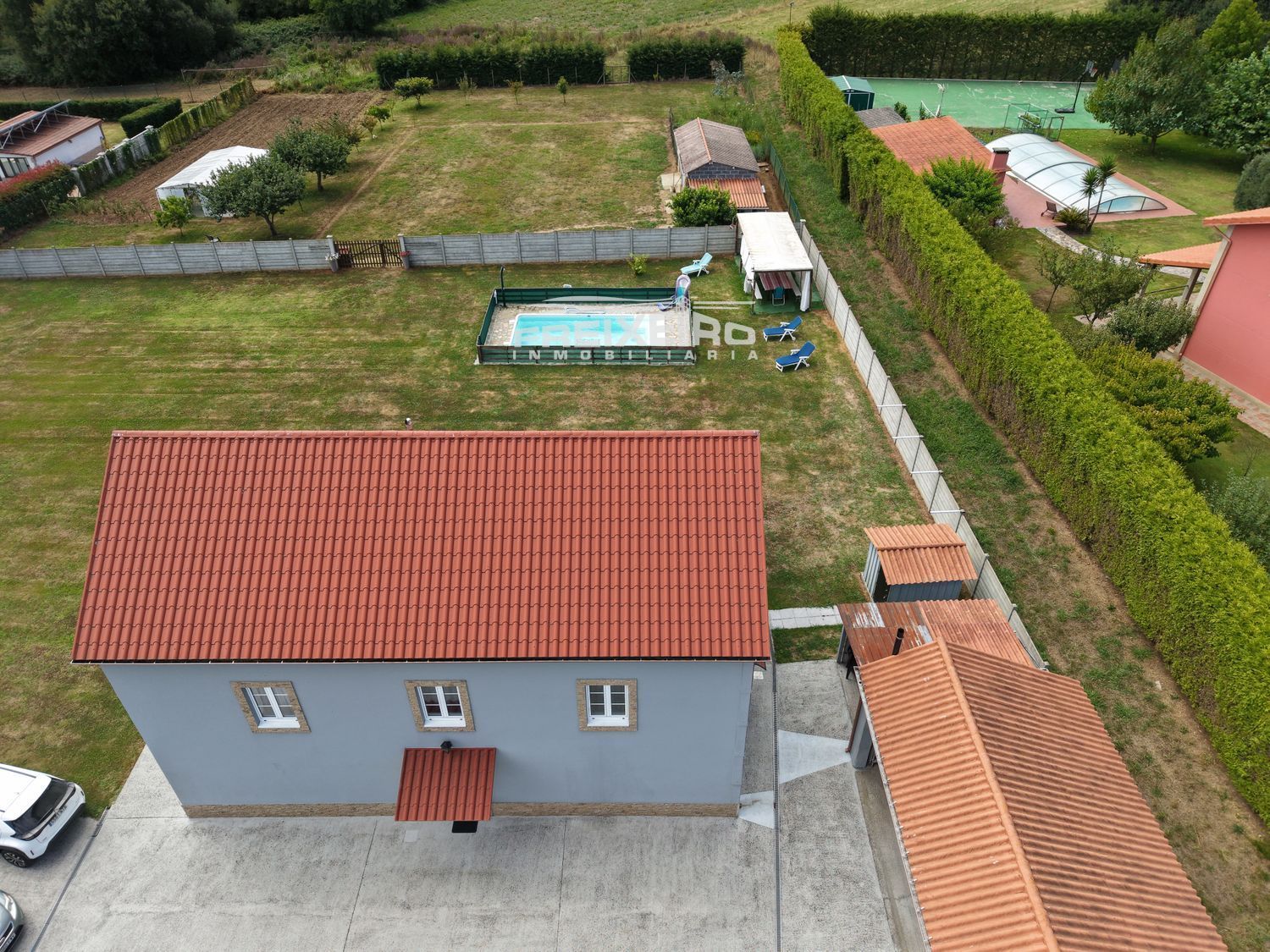 Sus exteriores son una pasada, está rodeada de una FINCA EDIFICABLE DE 4.644 metros cuadrados totalmente cerrada, en ella se encuentran varias bodegas y un garaje.