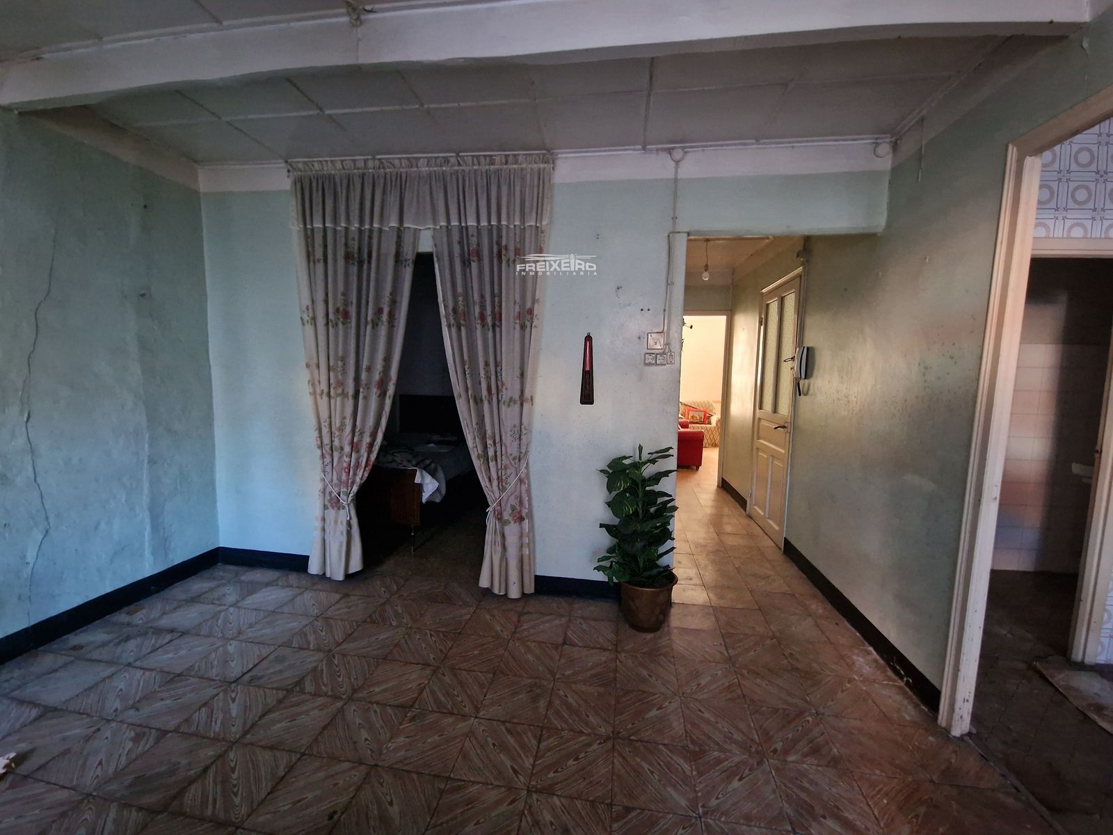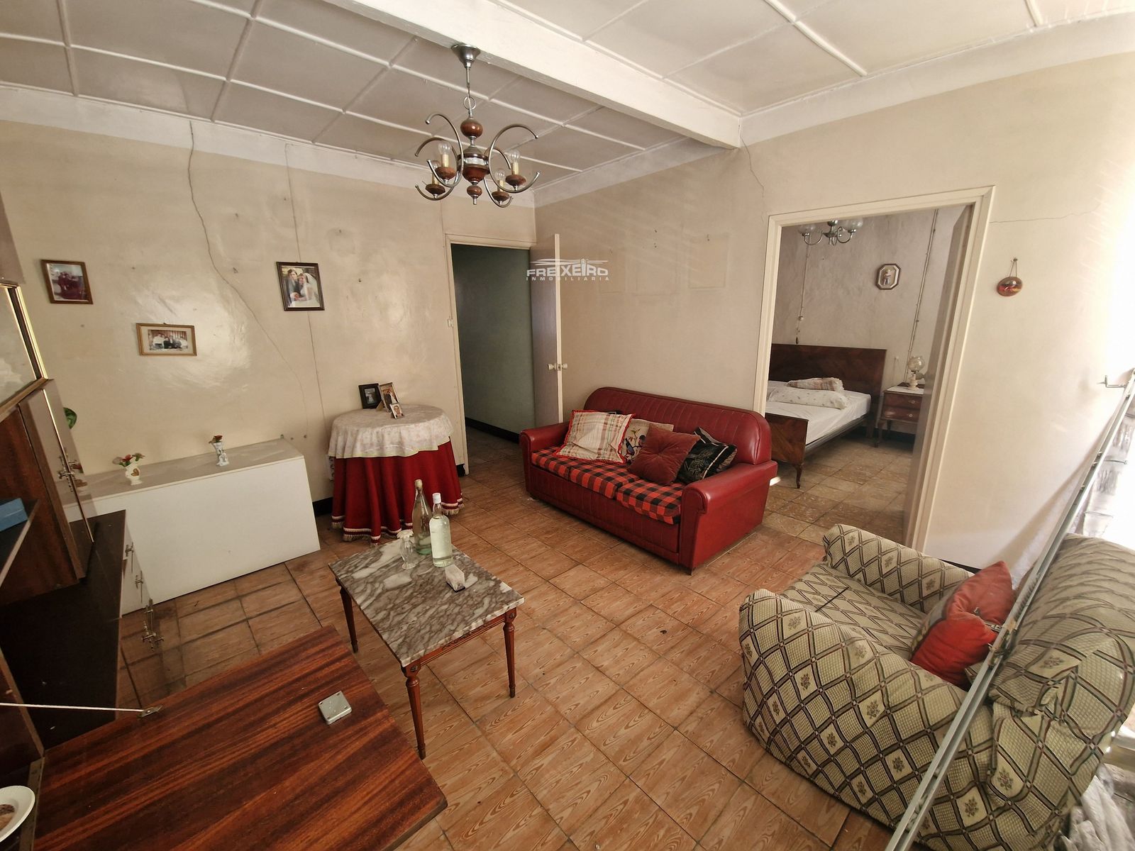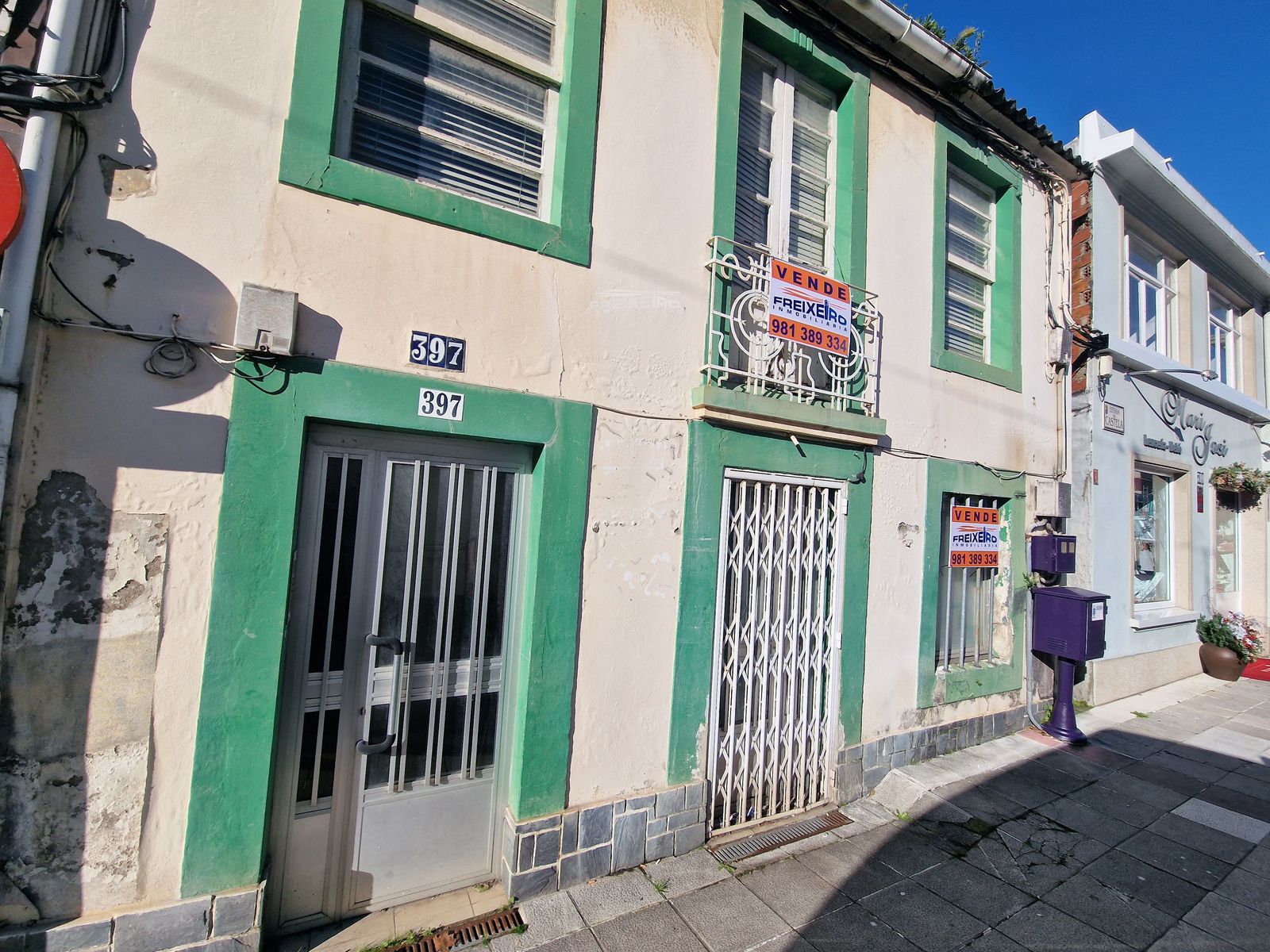 La planta baja cuenta con 2 dormitorios, cocina, sala y 1 baño (para rehabilitar) y al estar en primera línea comercial podría destinarse a negocio / oficina.